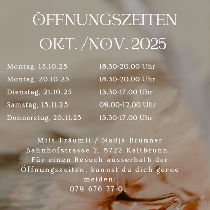 Die Öffnungszeiten für Oktober/ November siehst du auf dem Bild.
